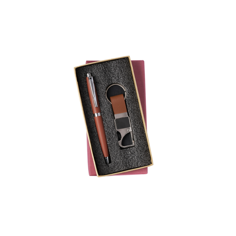metal pen with metal PU leather keyhains